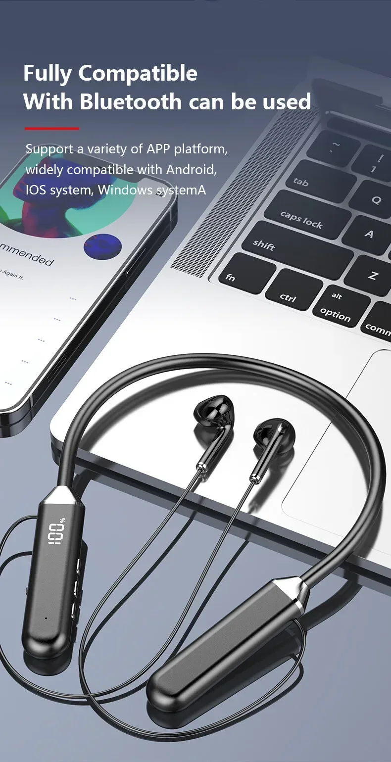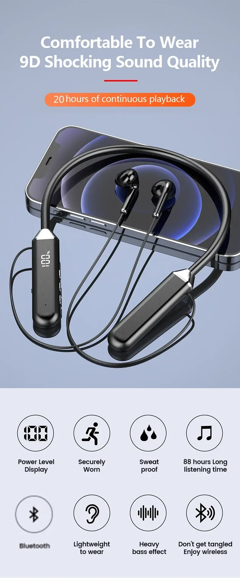 Neckband wireless connection compatible 5.2 LED headphones High sound quality stereo power display Magnetic Bluetooth earphones